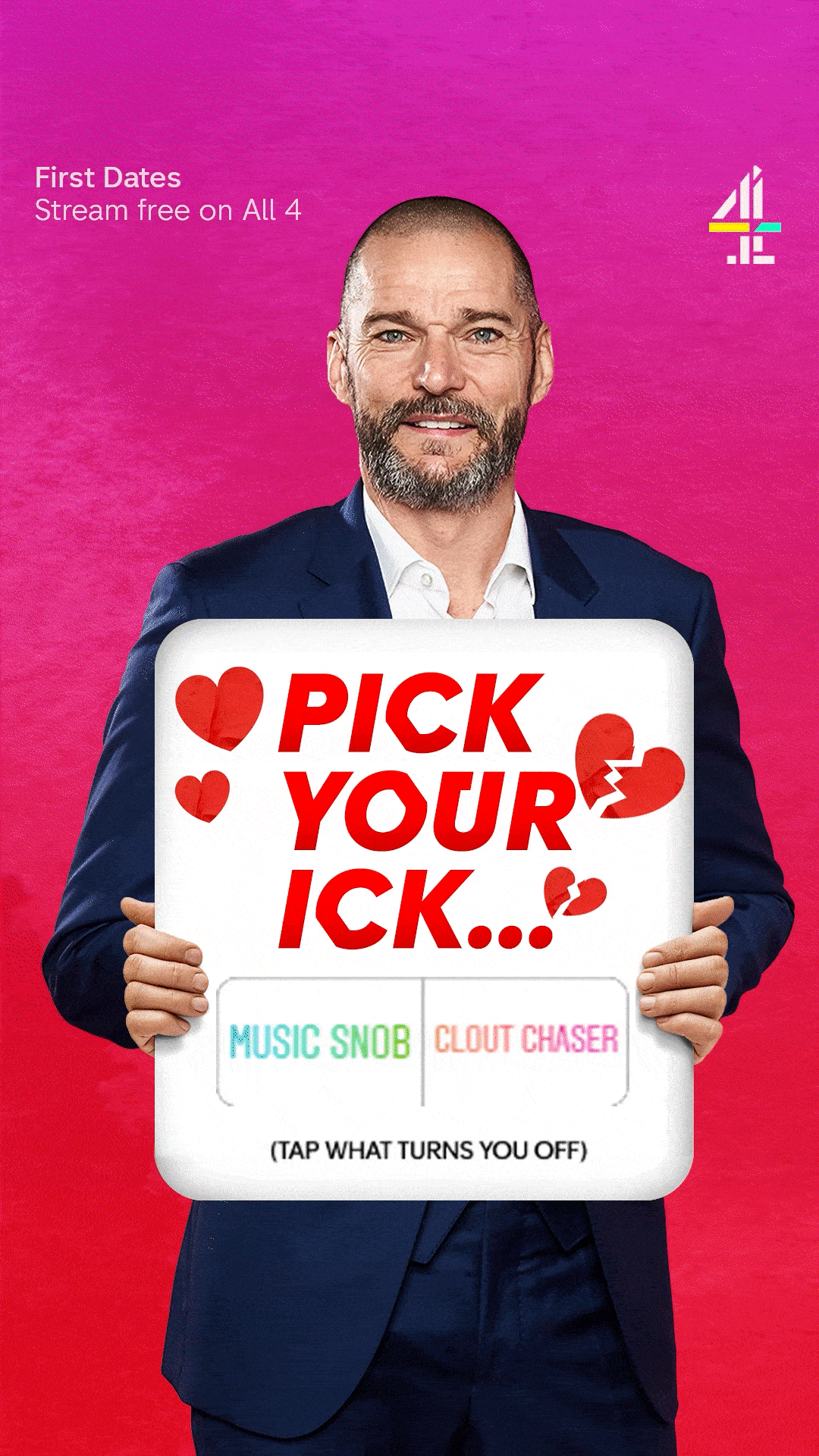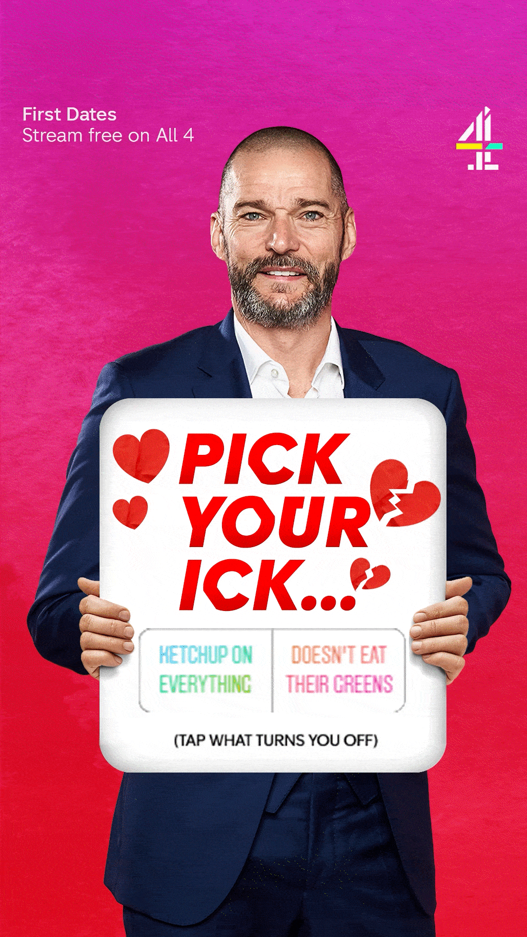 For a new season of First Dates, I conceptualised, pitched and edited this "Pick Your Ick" paid Instagram ad, featuring polls. The campaign received highÂ